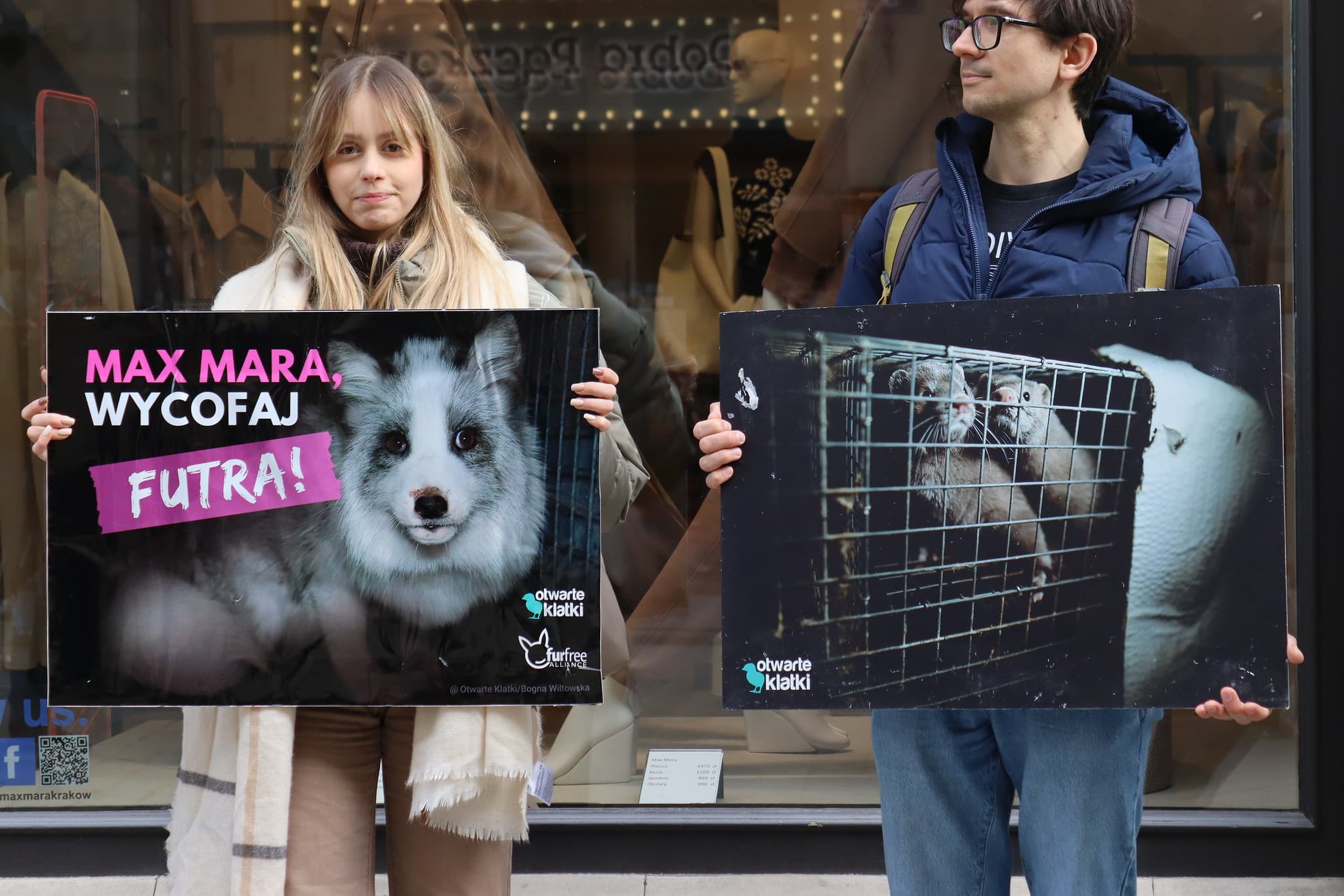 Również w lutym wzięliśmy udział w międzynarodowej kampanii skierowanej do włoskiej marki Max Mara, której celem było przekonanie firmy do zrezygnowania ze sprzedaży futer naturalnych. Zorganizowaliśmy protest pod sklepem Max Mary w Krakowie. Podobne protesty odbyły się także m.in. w Helsinkach, Londynie, Wiedniu, Mediolanie i Sofii. W ramach kampanii nad siedzibą firmy we Włoszech przeleciał też ogromny balon na gorące powietrze. Łącznie wysłaliście do Max Mary ponad 200 tysięcy wiadomości i wykonaliście kilka tysięcy telefonów. To dzięki Waszemu zaangażowaniu kampania zakończyła się sukcesem i kilka miesięcy po jej zakończeniu Max Mara oficjalnie ogłosiła, że wycofuje futra naturalne ze sprzedaży.