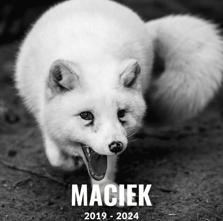 W sierpniu dotarła do nas bardzo przykra wiadomość o nagłym odejściu liska Maćka. Maciuś został uratowany z fermy w Karskach w 2019 roku, kiedy był jeszcze szczeniakiem. Cierpiał z powodu nieleczonego otwartego złamania tylnej łapy, w które wdała się infekcja. Walka o łapę Maćka trwała ok. 2 tygodni, ale ostatecznie musiała zostać amputowana. Maciek swoje życie spędził w domowym azylu dla zwierząt Psubratki, pod opieką tych samych osób, które uratowały go z koszmaru fermy - naszych aktywistów Bogny i Andrew. Do samego końca dodawał nam wszystkim ciepła, otuchy i siły w walce o zwierzęta hodowane na futra i pokazywał nam, że nawet po tak trudnych doświadczeniach i bez jednej łapy lis uratowany z fermy może psocić, bawić się, biegać i być dowodem na to, że klatka to nie miejsce dla lisa. Mimo że nie ma go już z nami, Maciek na zawsze zostanie w naszych sercach.