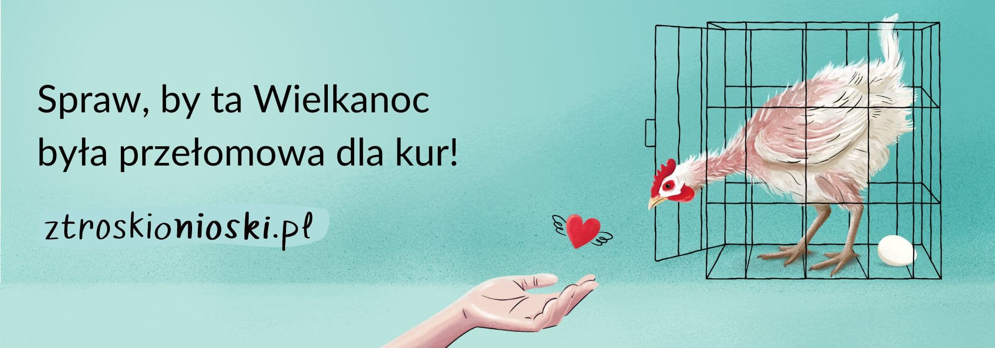 Ten rok może być przełomowy w walce o lepsze życie dla kur. Właśnie dlatego miliony Polaków i Polek w ciągu najbliższych tygodni dowiedzą się jak pomóc kurom cierpiącym w klatkach. Dzięki Waszemu wsparciu kampania “Z troski o nioski” dotrze do telewizji, internetu i na ulice!